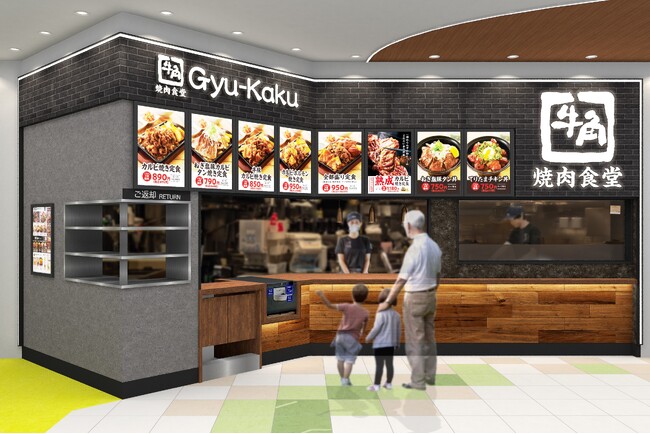 「牛角焼肉食堂」は国内焼肉チェーン店舗数No.1の牛角がプロデュースするフードコート専門店です。お客様からは 「買い物ついでに焼肉を定食スタイルで気軽に満喫できる」「大好きな牛角の冷麺をフードコートで食べられて嬉しい!」といった声をいただいており、週末には行列ができるほどの賑わいとなっております。
