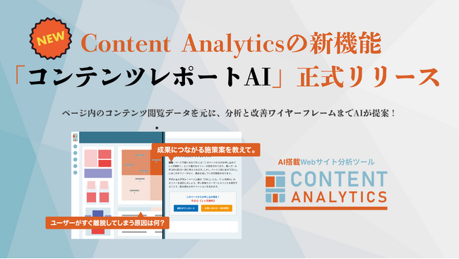 株式会社UNCOVER TRUTH(所在地:東京都渋谷区、代表取締役:石川 敬三、以下UNCOVER TRUTH )は、自社で開発・提供するAI搭載Webサイト分析ツール「Content Analytics」 において、ページ内のコンテンツ(要素)の分析と改善提案をAIが自動で行う新機能「コンテンツレポートAI」を正式リリースしたことをお知らせします。