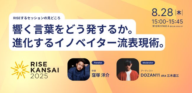 2025年8月28日(木)、大阪・心斎橋で開催される「RISE KANSAI 2025」にて、俳優の窪塚洋介氏とアーティストのDOZAN11(=三木道三)氏による特別トークセッションを実施いたします。