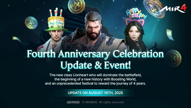 WEMADE Co., Ltd.(代表取締役 Park, Kwan Ho 以下、WEMADE)が、Web3 MMORPG「Mir4 Global」のサービス4周年を記念し、8/19(火)に大型アップデートを行い、新クラス「闘士」と成長特化サーバー「登龍門」を公開した。