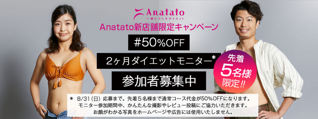新規オープンを記念して、Anatato全店舗にて、入会金無料と10%OFFのキャンペーンを実施します。