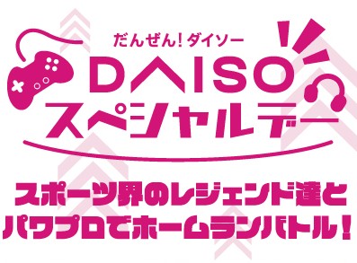 「DAISOスペシャルデー」では、日本野球界を代表するレジェンド松坂大輔さん、日本サッカーの発展に寄与したレジェンド福田正博さん、ゲームの実況配信で人気の“ストリーマー”CRおぼさんと、野球ゲーム『パワフルプロ野球2024-2025』を使ったホームラン競争をお楽しみいただく、参加希望者を9月5日(金)まで募集いたします。皆様のたくさんのご応募をお待ちしております。なお、当日の様子はYouTubeでも生配信を予定しています。