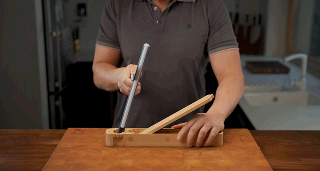 刃物を「挟まず」、まっすぐ上下に動かすだけ。すべての刃物・切れ味の悩みに終止符を。