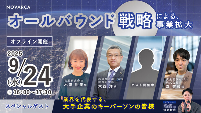 NOVARCA、オールバウンド戦略を深堀る招待制セミナーを開催 ゲストスピーカーとして元三越伊勢丹社長の大西様や花王様、資生堂様をはじめとした業界のキーパーソンにご登壇いただきます