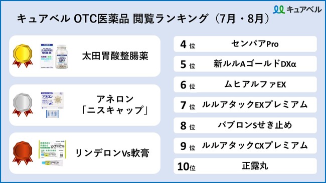 キュアベル OTC医薬品 閲覧ランキング1位~10位(7月・8月)