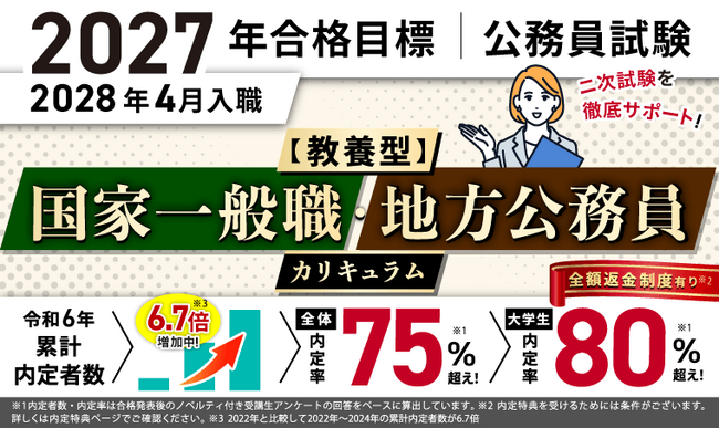 公務員試験【2027年合格目標】【教養型】国家一般職・地方公務員カリキュラム(フル・ライト)(大卒)リリース!