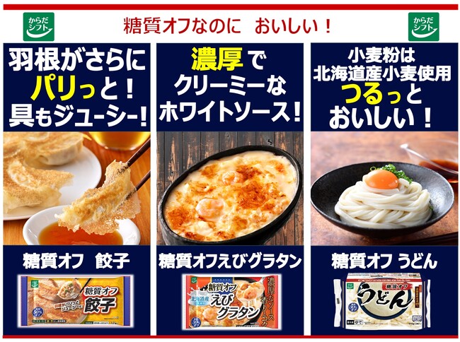 おいしいをがまんしない“食べたいあなたの糖質オフ”からだシフト冷凍食品『糖質オフシリーズ』から3 品