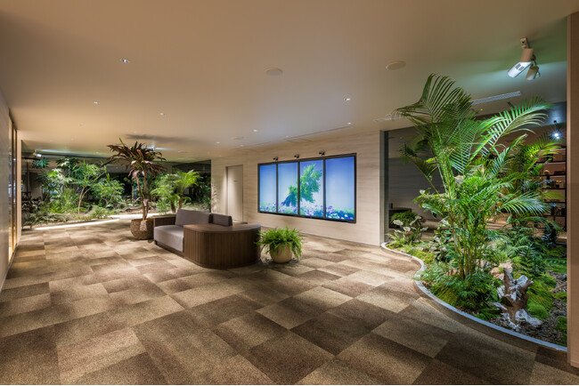 「植栽とデジタルの融合」をテーマに、最新技術と豊かな緑が織りなす特別な体験空間を実現。透明スクリーンを通した幻想的なグリーンビュー、インタラクティブな4面サイネージと本物の植栽が一体となるアート空間、そしてミストや揺らめく風が五感を表現。生命力あふれる自然樹形の樹木たちは、人と自然が共鳴する新たなライフスタイルを美しく表現。まるで森の中に足を踏み入れたような心地よさと癒し「indoor rainforest」を体現する先進的な取り組みが高く評価され、屋内緑化の未来を切り拓く事例として選ばれました。