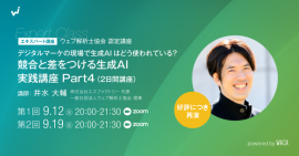 2025年9月12・19日(金)20:00〜21:30【エキスパート講座】デジタルマーケの現場で生成AIはどう使われている? 競合と差をつける生成AI実践講座 Part4