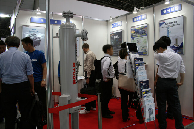「フロンの回収・充填・破壊・漏洩点検サービス」「回転機の振動遠隔監視システム」についてはパネルのみでご紹介、「高性能油分離器」と「可搬式/高圧仕様オイルクリーナー(浄油装置)」は実機とパネルを併せて展示いたしました。