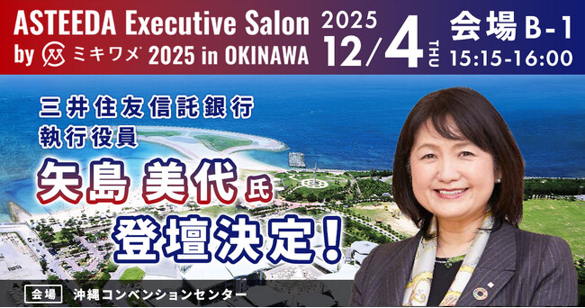 三井住友信託銀行 執行役員 矢島美代氏の登壇が決定!業界の垣根を越え、新たな価値共創へ。「アスティーダエグゼクティブサロン by ミキワメ 2025 in 沖縄」