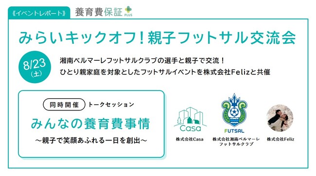 株式会社Casa(本社:東京都新宿区、代表取締役社長:宮地正剛)は、ひとり親支援団体である株式会社Feliz、日本フットサルリーグ(Fリーグ)で活動する株式会社湘南ベルマーレフットサルクラブと共同で、2025年8月23日(土)にひとり親家庭の親子を対象としたサッカーイベントを開催いたしました。