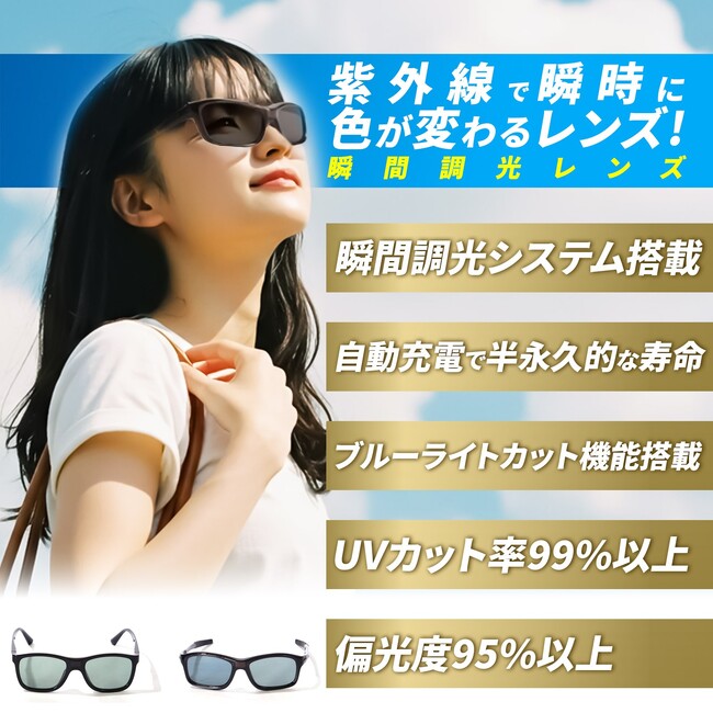 このたび、Gran Walkerより、内蔵光センサーにより“瞬時に”レンズ濃度を自動調整する「瞬間調光サングラス」が登場。UVカットや偏光機能を備え、ドライブやアウトドア、スポーツに最適の1本です。