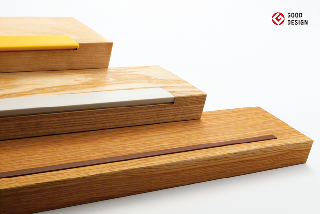 「木階段用」という従来なかったジャンルを開拓したノンスリップです。木製踏板への落とし込み加工によって、建築家好みの「フラットな納まり」を実現。金属パーツを露出させることなく、天然木・集成材階段のゆたかな趣きをそのままに保ちます。装飾性をそぎ落としたきわめてミニマルなデザインが評価され、2019年のグッドデザイン賞を受賞。さらに、幼保施設向けの「あんしんできるデザイン」をめざした M103(新品番:M633)は2024年のキッズデザイン賞を受賞しています。