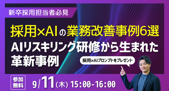 【新卒採用担当者必見セミナー開催!】採用×AIの業務改善事例6選~AIリスキリング研修から生まれた革新事例~