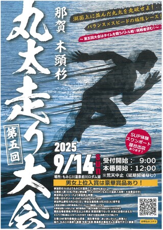 徳島県那賀町の夏恒例イベントとして、地域の若者たちが手作りで運営する人気イベント「第5回那賀木頭杉丸太走り大会」が、2025年9月14日(日)に開催されます。今年で5回目を迎えるこの大会は、地元ならではのアットホームな雰囲気とスリリングな競技が楽しめます。 本大会の競技は、湖面上に並んだ一本丸太の上でバランスを保ちながら駆け抜けるというものです。見た目以上に難易度が高く、挑戦者たちの技術と集中力が試されるスリル満点の競技が展開されます。