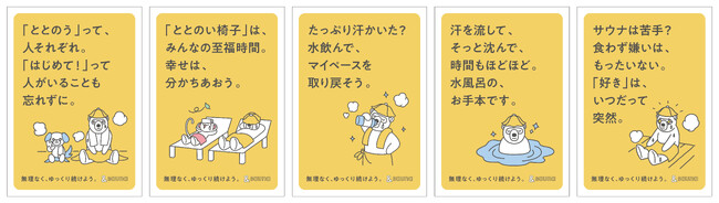 サウナと無理なく自然につきあう気持ちを、5種類のポスターに込めています。
