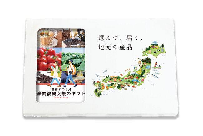 令和7年8月に発生した大雨災害を受け、災害救助法適用となった地域の産品を集めたカタログギフトを販売開始、売上の一部を寄付