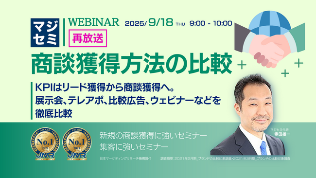 マジセミ株式会社は「【再放送】商談獲得方法の比較」というテーマのウェビナーを開催します。
