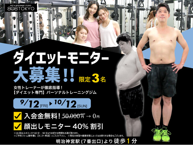 【ダイエットモニター】募集開始!! 入会金無料&コース料金40%割引|表参道ダイエット専門パーソナルトレーニングジム"808TOKYO"
