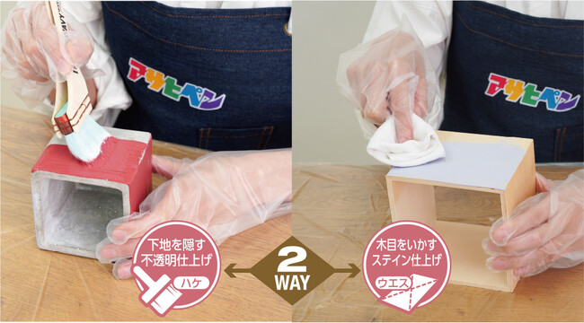 ●塗り方で選べる2つの仕上がりを楽しむことができる水性塗料