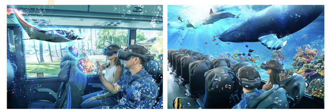 本プロダクトはすでに海外でも導入が始まっており、2025年2月13日より株式会社エイチ・アイ・エス、株式会社ネイキッドとの共同プロジェクトとして、ハワイ・ホノルルで観光エンターテインメントツアー「XploreRide Hawaii produced by NAKED, INC.」がスタートしました。ワイキキビーチやダイヤモンドヘッドを巡りながら、実際の風景とXR技術が融合した「ハワイに隠された海中都市」を冒険する没入型バスツアーで、XRを活用した観光体験の新たな可能性を示しています。