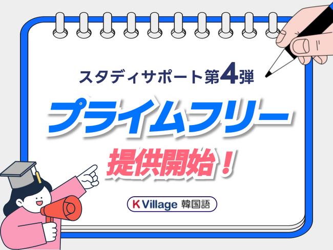 日本最大級の韓国語教室「K Village 韓国語」を運営する株式会社K Village(本社:東京都新宿区、代表取締役社長:桑原 元就)は、学習継続を応援するスタディサポート(スタサポ)施策の第4弾として、特典つき無料制度「プライムフリー」の提供を2025年9月より開始しました。