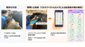 北里大学獣医学部の鍋西久准教授、東京理科大学先進工学部の相川直幸教授らの研究グループは、マルチスペクトルカメラで牛の尾静脈付近(尻尾裏側)を撮影することで、非侵襲的にかつ瞬時に複数の血液成分の同時分析が可能となる新たな手法を開発しました。これまでに、血液成分のうち牛の飼養管理上重要な12項目について検討を進め、いずれも80%以上の予測精度を実現しました。この新技術による牛の代謝プロファイルテストが普及し栄養状態の管理に活用されることで、生産性の向上が期待されます。この研究成果は、2025年9月3日に開催された第168回日本獣医学会学術集会で発表されました。