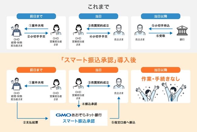 <OHDさまにおける「スマート振込承認」導入前後のフローイメージ>
