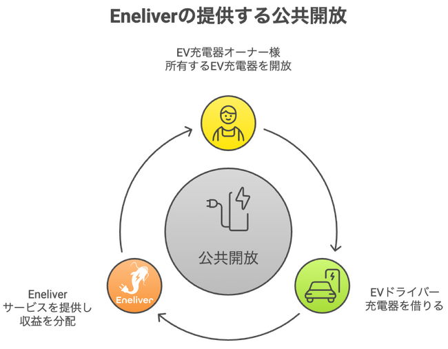 Eneliver株式会社(本社:東京都新宿区、代表取締役社長:中島彬匡、以下「Eneliver」)はこのたび、EV充電器オーナーが自身の充電器を一般のEVドライバーに開放(シェアリング)し、収益を得ることができる新機能「公共開放」をリリースいたします。本機能は、Eneliverアプリから簡単に設定・運用が可能で、EV充電インフラの拡大と持続可能な社会の実現に貢献します。