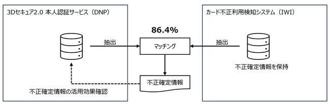 大日本印刷株式会社(DNP)と株式会社インテリジェントウェイブ(IWI)は、非対面決済市場における不正取引対策を強化する取り組みを進めています。今回、DNPが提供する「3Dセキュア2.0 本人認証サービス」*1と、IWIが提供する「カード不正利用検知システム」*2の間でデータマッチングを行う実証実験の結果、86.4%のマッチング率を実現しました。これにより、今後、両システム間での不正取引情報の自動的な共有が可能となり、不正検知精度の向上が期待できます。また、従来手作業で行われていた不正取引情報の両システムへの登録にかかる手間が削減され、イシュア(カード発行会社)の業務効率の大幅な向上も期待できます。手作業による業務負荷を理由に登録作業を実施していなかったイシュアでも、不正取引情報を登録できるようになるため、不正取引検知により多くの情報が利用可能となります。両社は、登録された情報を活用して両システムで高度な不正検知を行うことで、非対面決済の安全性を一層向上させます。
