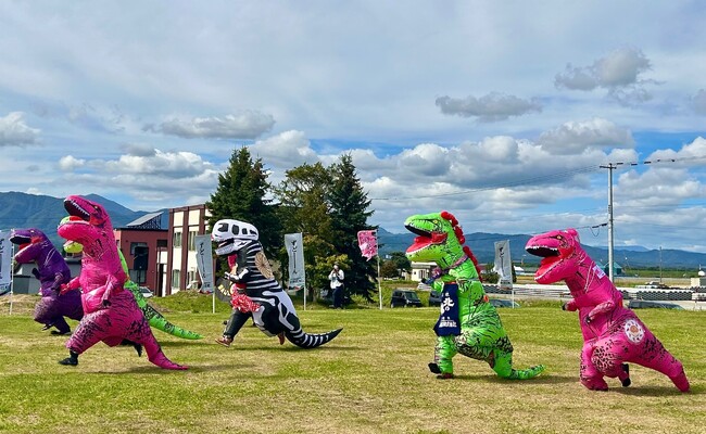 同会場内(レース会場は隣接する奈井江小学校グラウンド)で、北海道では奈井江町が初開催となった全国で大人気のティラノサウルスレースは4度目の開催。