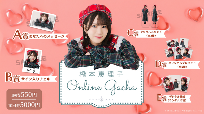 株式会社ANYLAND(本社:東京都渋谷区、代表取締役:黒澤隼人、以下ANYLAND)は、AKB48 橋本恵理子オンラインガチャの販売が決定したことをお知らせいたします。