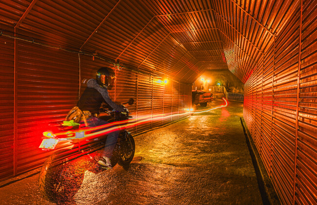 坑道を走り抜けるライダー。