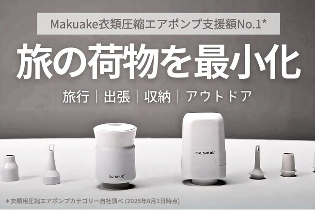 旅行に持っていきたい荷物を小さくまとめ、家の掃除にも防災にも役立つ圧縮エアポンプ。Makuake累計1,800万円を超える人気シリーズがCAMPFIREでクラウドファンディングを開始