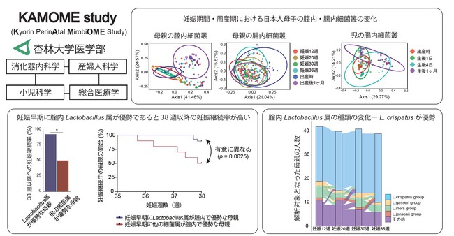 杏林大学(東京都三鷹市。学長:渡邊 卓)医学部の消化器内科学教室、産科婦人科学教室、小児科科学教室、総合医療学教室からなる研究グループ(※)が、日本人妊婦において妊娠早期の腟内に乳酸菌の一種であるLactobacillus属(ラクトバチルス属)が多く存在することが良好な妊娠経過と関連することを初めて明らかにしました。