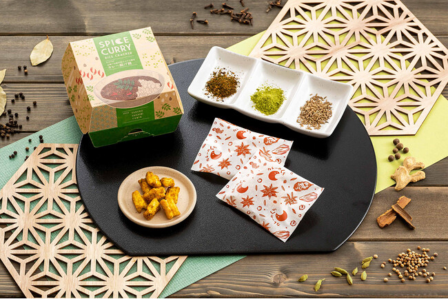 『スパイスカレー揚げ餅』は、もち米とうるち米をブレンドした生地に玉ねぎを練り込み、「サクッ」「ほろっ」とした軽やかな食感が特徴。 “山椒”や“七味”といった「和のスパイス」を軸に20種のスパイスやハーブを絶妙に組み合わせ、香ばしく食欲をそそる味わいに仕上げました。