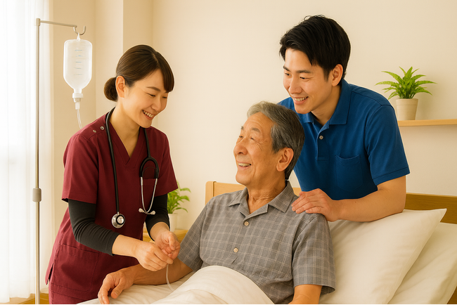 看護師が常駐し、日常的に医療的ケアが必要な方も安心して生活できる環境を整えています。介護と看護の連携により、身体的サポートだけでなく、安心も提供します。