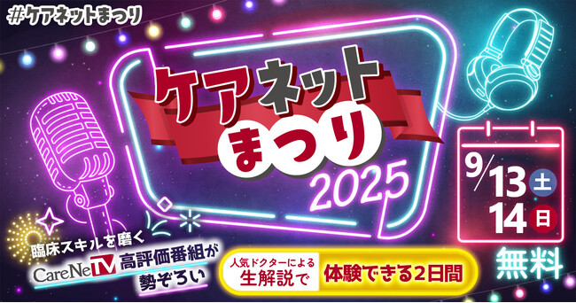 株式会社ケアネット(本社:東京都千代田区、代表取締役社長:藤井勝博、以下「ケアネット」)は、2025年9月13日(土)、14日(日)に医療者向け無料オンラインLIVEイベント「ケアネットまつり2025」を開催いたします。