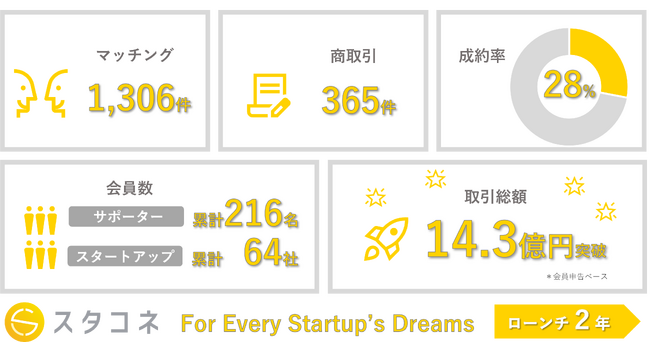 株式会社スタートアップコネクト(本社:東京都港区、代表取締役:寺岡大介、以下「スタコネ」)は、この度、スタートアップ支援マッチングサービス『スタコネ』のローンチから2周年を迎え、事業の順調な成長をご報告いたします。