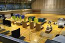 夕方には自治体持ち寄りの非常食を調理し、グループで食事。夜はコインシャワーでのシャワー体験も行われ、体育館での宿泊環境や睡眠の質を計測しました。