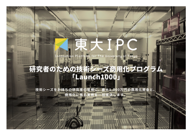 東京大学協創プラットフォーム開発株式会社(所在地:東京都文京区、代表取締役社長:植田浩輔、以下「東大IPC」)は、このたび、文部科学省の「次世代型オープンイノベーションのモデル形成事業」に採択を受け、研究者のための技術シーズ商用化プログラム「Launch1000(ローンチセン)」を始動します。