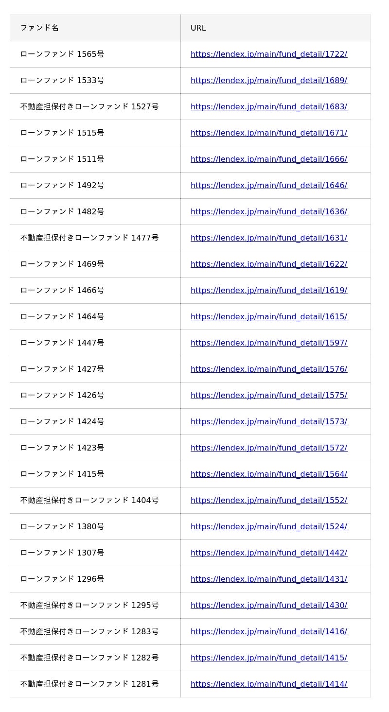 ■2025年8月のレンデックス(LENDEX)の償還ファンド一覧