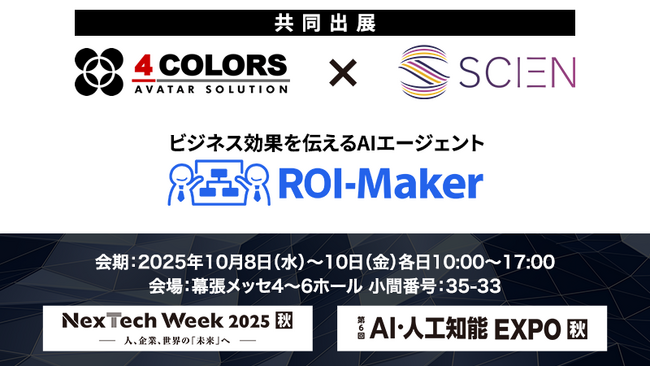 ビジネス効果を伝えるAIエージェント「ROI-Maker」β版リリース。東大 松尾研発スタートアップ SCIENと「AI・人工知能EXPO(NexTech Week)」に共同出展
