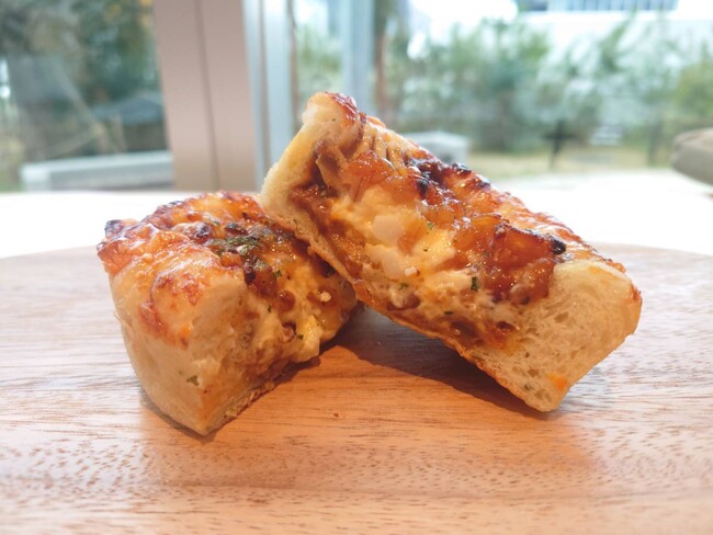 米麹と香味野菜に漬けた秋川牛を、自家製ブイヨンとローリエで一晩煮込み、10種のスパイスで仕上げた香り豊かな唯一無二のキーマカレーパン。