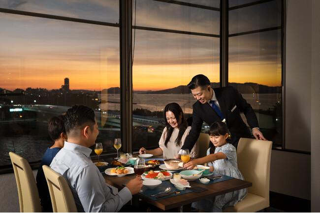 博多湾に沈む美しい夕日や、福岡市街の煌めく夜景を眺めながら、平日限定のファミリー向けディナープラン「星楼」をぜひご家族皆様でご堪能ください。