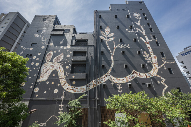 「TENNOZ ART FESTIVAL」は、“アートの島=天王洲アイル”を舞台に、2019年から継続して運河沿い建築物や駅通路への大型壁面アートの制作や、公開空地への立体アートの設置を行っています。本年は、生命の根源を描く現代アーティスト淺井裕介を迎え、寺田倉庫G号壁面に高さ約24m、横幅約45mの大型壁画作品を追加しました。これにより、TENNOZ ART FESTIVALで公開した壁画や立体のパブリックアートは合計23作品になります。