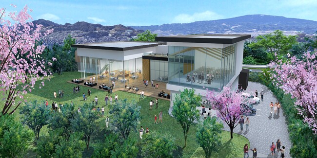 出店予定地は、福岡空港から車で約7分の好アクセスでありながら、丘陵地に設けられた緑豊かな空間で自然由来の森を感じることができます。春に広がる桜の情景など、季節による様々なロケーションを楽しみながら、カフェ、レストラン等を有する施設を出店し、人と自然がつながり、たくさんの笑顔が生まれる賑わいの場を提供いたします。