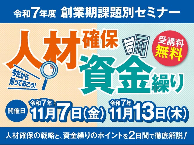 令和7年11月7日・13日「創業期課題別セミナー」を開催します!