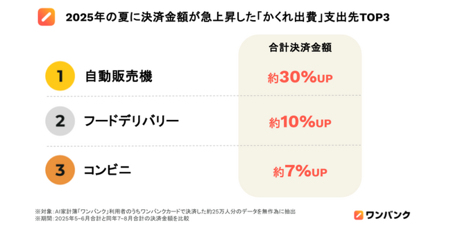 <猛暑×物価高で家計に二重打撃!残暑にも注意の【かくれ出費】最新調査> この夏に急上昇した出費は!? 1位「自動販売機」2位「フードデリバリー」3位「コンビニ」